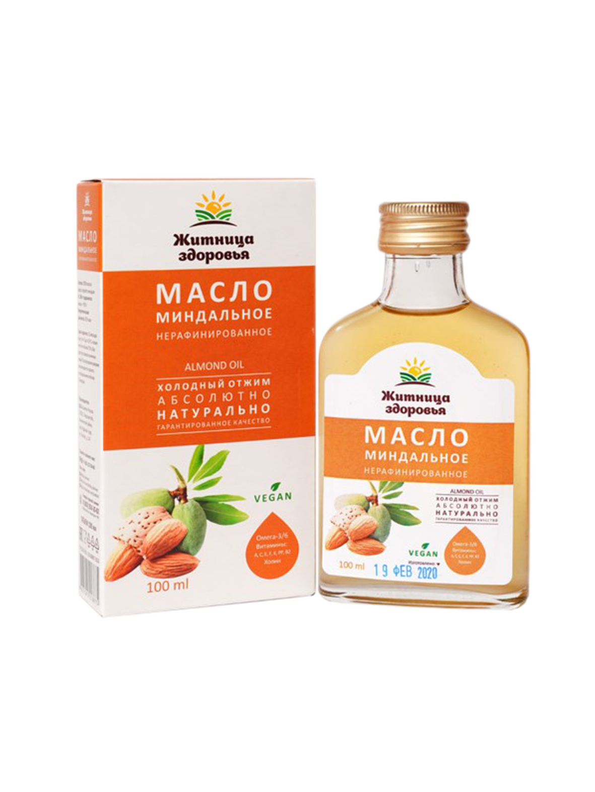 100% миндальное масло холодного отжима «Житница здоровья». Сделано из чилийского сладкого миндаля высшего качества